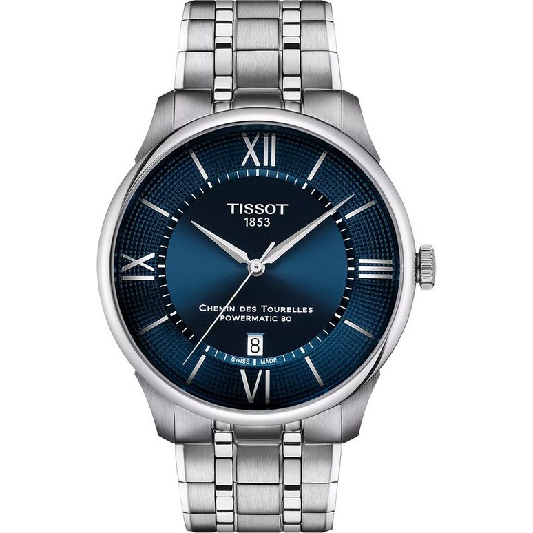 Το ανδρικό ρολόι Tissot Chemin Des Tourelles Powermatic 80 αποτελεί μια εξαιρετική επιλογή για όσους αναζητούν διαχρονική κομψότητα και κορυφαία ελβετική ποιότητα. Εμπνευσμένο από την ιστορική τοποθεσία της Tissot στην Ελβετία, το μοντέλο αυτό συνδυάζει κλασικό σχεδιασμό με σύγχρονη τεχνολογία, δημιουργώντας ένα ρολόι που ξεχωρίζει σε κάθε περίσταση. Το εντυπωσιακό μπλε sunray καντράν του προσφέρει βάθος και πολυτέλεια, ενώ οι κομψοί δείκτες, σε συνδυασμό με ρωμαϊκούς και γραμμικούς αριθμούς, ενισχύουν τον διαχρονικό του χαρακτήρα. Η ένδειξη ημερομηνίας στο κάτω μέρος του καντράν προσθέτει πρακτικότητα, διατηρώντας παράλληλα την minimal αισθητική.